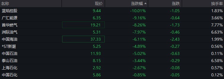A股“三桶油”集体低开,中国海油开跌8.1%,中国石油开跌6.4%,中国石化开跌1.8%,随后跌幅有所收窄。中曼石油、蓝焰控股、准油股份、贝肯能源盘中跌停,洲际油气、中国海油、新天然气跌幅居前。